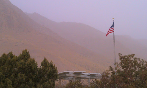 Five miles later we ran straight into the Guadalupe Mountain Range. The Jeep had to climb up a couple thousand feet to reach the National Park. The wind was so forceful we could barely open the doors.