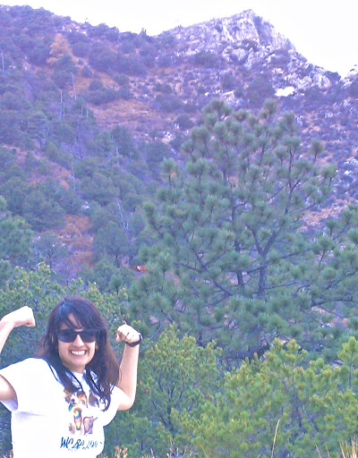 Because we started the hike in the afternoon we were unable to reach the peak. Lisa toughed out the difficult climb and the unnerving drop offs and posed in front of the granite peak just beyond our reach.
