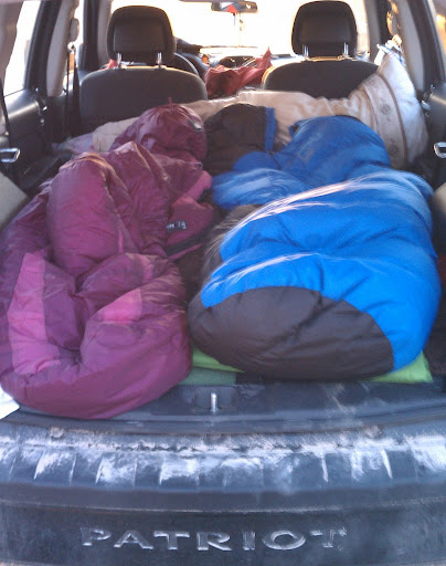 Welcome to the Hotel Jeep. A park ranger came by and told us not to sleep in our tent overnight. The weather report called for 80 mph winds that night. He was right. Our tent poles would have bent in half if we would have set them up. Plus they were already bent from the wild boar that ran into the tent the previous night! As the night progressed the wind picked up. I had to turn my car into the wind to stop it from rocking back and forth. We set up our luxury beds, listened to the wind howl, and played some Uno by lantern.